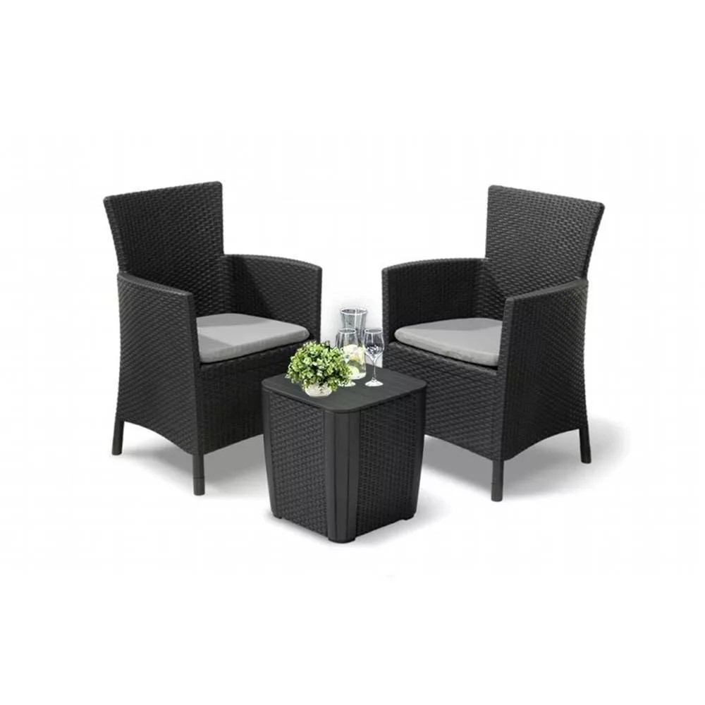 Az elegáns Rosario Luson kerti bútor szett elegáns és univerzális felszerelés, tökéletes otthona kertjébe vagy teraszára. A kerti bútor szett rendekívűl strapabíró, és még a legigényesebb emberek elvárásainak is megfelel. A bútorokat az Allibert cég gyártotta, amely egy csoportban működik olyan cégekkel, mint a Keter vagy a Curver, minőségi műanyag kiegészítőket kínálva.