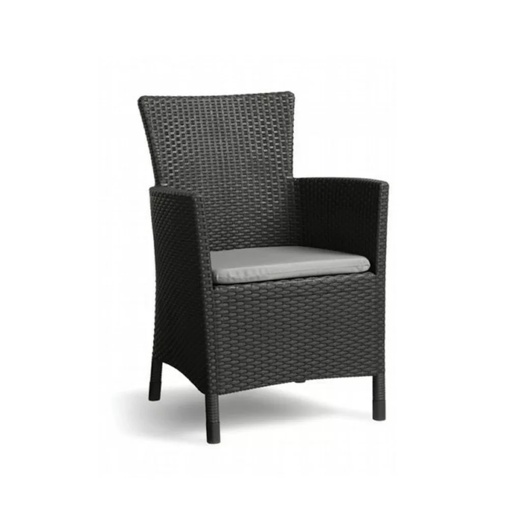 Egy nagy és kényelmes fotel és egy elegáns kis asztal nem csak otthona, hanem egy étterem kertjébe vagy egy elegáns szállodába is remekül helyt áll. Könnyen tisztítható, ugyanakkor tartós és stabil. A kerti szék tartozékaként szolgál egy ülőpárna is. A párnák színe kissé eltér a bútorokétól - a barna fotelhez egy taupe, míg a grafit fotellel ellátott készlethez egy szürke párna tartozik. Ez a finom színkülönbség mindenkit lenyűgöz.
