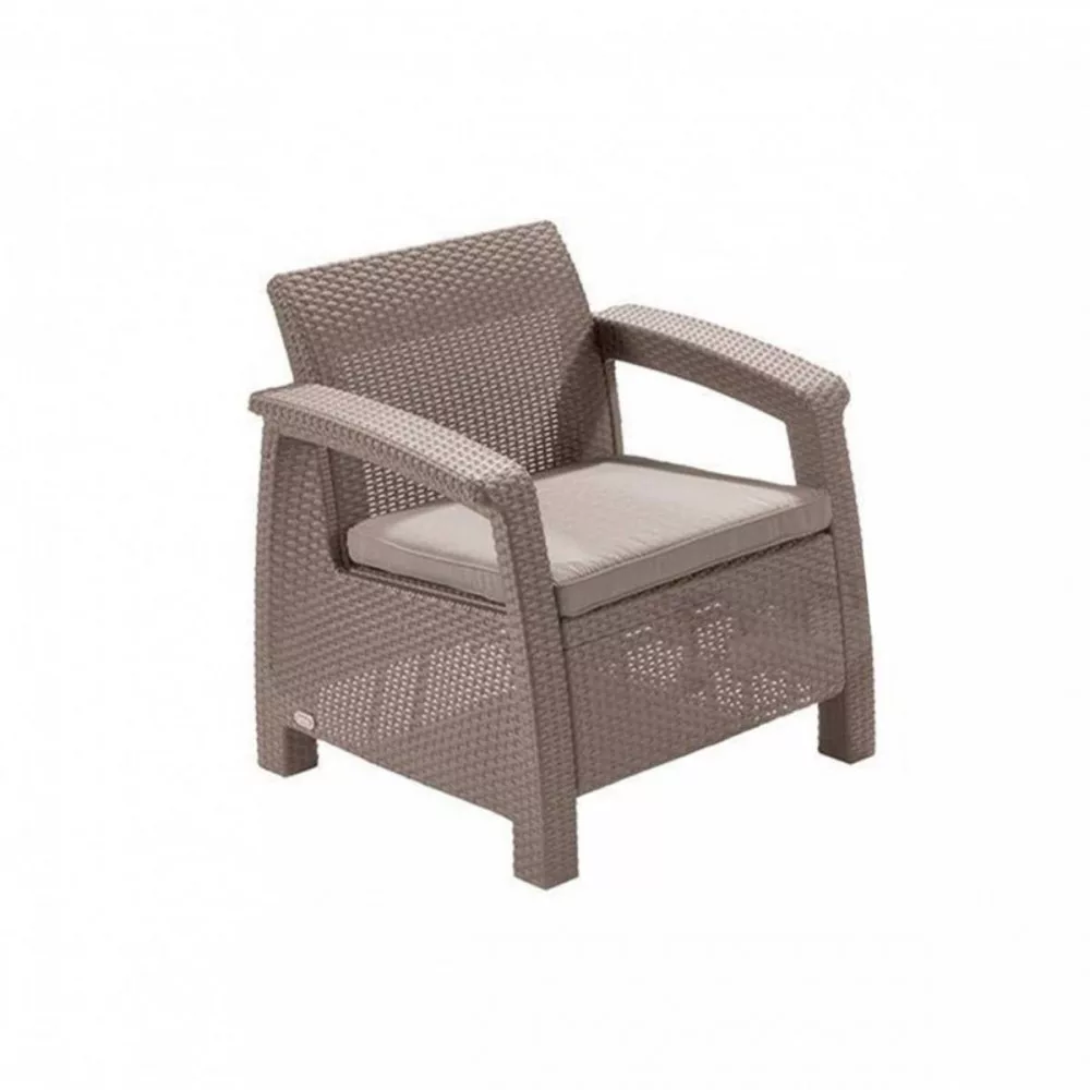 A bútorok legfontosabb előnye a kényelme. A Corfu Love Duo kerti bútor szett kanapéja és fotelei profilos háttámlákkal, széles kartámaszokkal és lapos üléspárnákkal rendelkeznek - amelyeknek köszönhetően élvezhetjük annak kényelmét, függetlenül attól, hogy kávét iszunk, újságot olvasunk vagy napozunk. A párnák ideálisan illeszkednek az ülések méretéhez és 6 cm vastagok.A bútorok ülőhelyenként képesek 300 kg - 100 kg súlyt megtartani . Kivételes tulajdonságuk a polipropilén - egy rendkívül tartós műanyag . Az anyag ismert a magas hőmérséklet, víz- és UV-sugárzás káros hatásainak ellenállásáról . Ez lehetővé teszi a bútorok intenzív színének és szép alakjának fenntartását, még akkor is, ha egész évben a szabadban áll. Az anyag tartósságának köszönhetően több éven át megcsodálhatjuk a szépségüket. Az üléspárnákat megfelelően impregnálták, hogy nagyobb vízállóságot biztosítsanak. Noha az erős eső nedvesíti őket, mint bármely más párnát, a kis szitálás vagy a kiömlött ital semmilyen módon nem fogja tönkretenni.