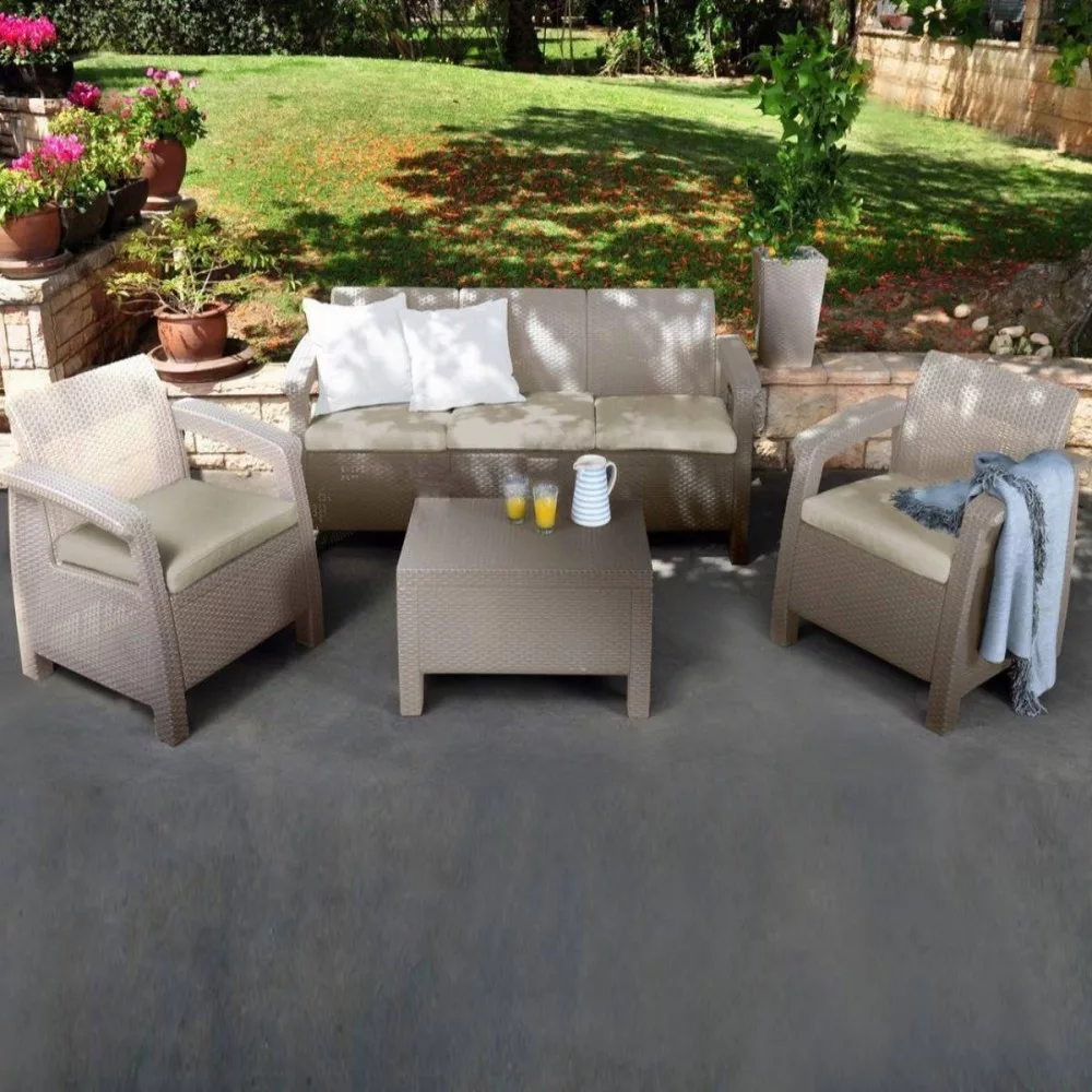 A Corfu Love Duo kerti bútor szett bármilyen kertben, teraszon vagy nagyobb erkélyen tökéletesen mutat. Ez az összeállítás nemcsak rendkívül stílusos, hanem kényelmes és tartós is. A bútorok könnyű felépítésüknek köszönhetően könnyen mozgathatók. A szettben egy kanapé, két kényelmes fotel és egy asztal kapott helyet. A kanapé nagy szélessége miatt elfeküdhet rajta és még aludhat is rajta a kedvenc fája alatt. A fotelekben nyugodtan olvashatja kedvenc régényeit míg az asztalon kényelmesen elfér minden amire a kint töltött idő alatt szüksége lehet.
