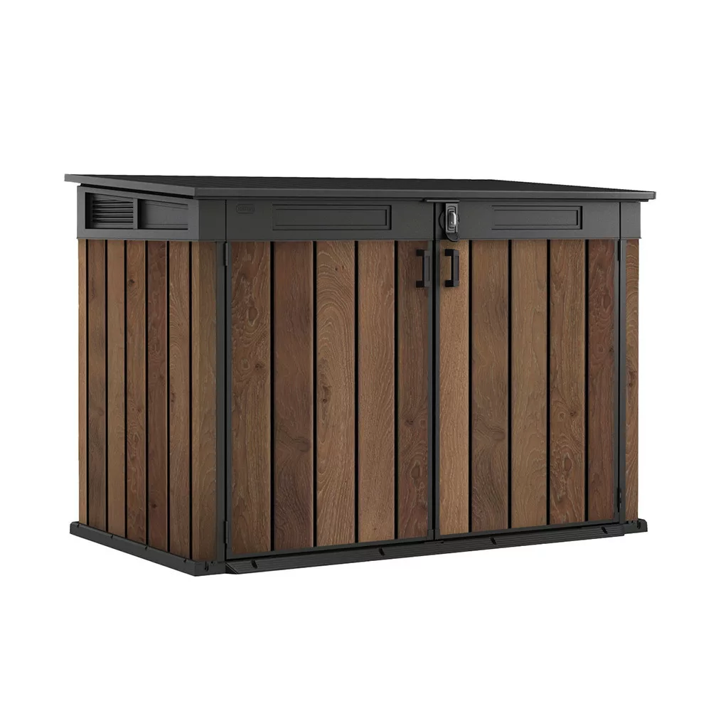 A DecoCoat™ technológia garantálja, hogy a tároló nem rozsdásodik, nem repedezik, és UV-álló felülettel rendelkezik. Az erős hidraulikus nyitószerkezet és fém zsanérok biztosítják a könnyed használatot és a hosszú élettartamot.