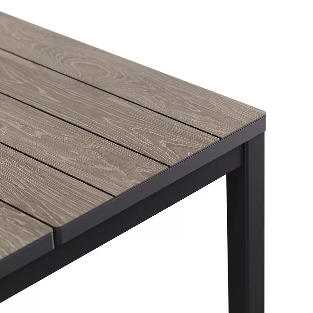 A DecoCoat technológiának köszönhetően az asztal a természetes fa megjelenését idézi, miközben a műanyag tartósságát kínálja. A felület ellenáll a karcolásoknak és az időjárási hatásoknak.