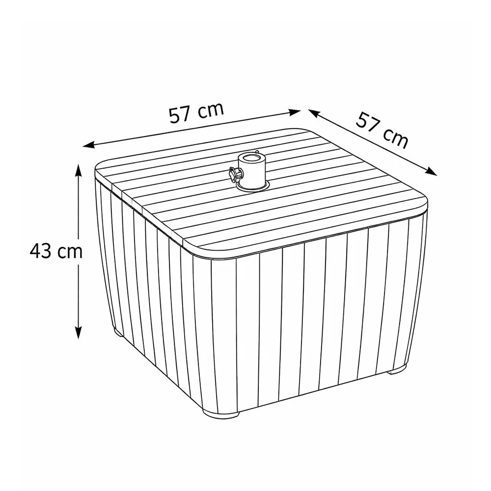 A strapabíró műanyag szerkezet ellenáll az esőnek, a nedvességnek és az UV-sugárzásnak, így hosszú távon is megőrzi megjelenését. A masszív kialakítás stabil használatot biztosít mindennapi kültéri használat során.