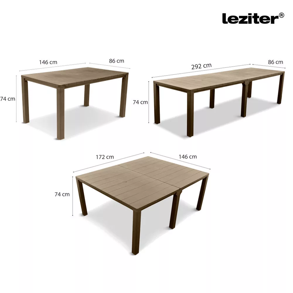 Amikor baráti összejövetelekre vagy családi ünnepekre készülsz, a Tulsa dupla kerti asztal segít, hogy mindenki kényelmesen elférjen. A két összekapcsolható elemnek köszönhetően percek alatt megnövelheted az asztal méretét, és akár egy 12 fős társaságot is vendégül láthatsz. Nincs több szűkös elrendezés vagy ideiglenes megoldás!