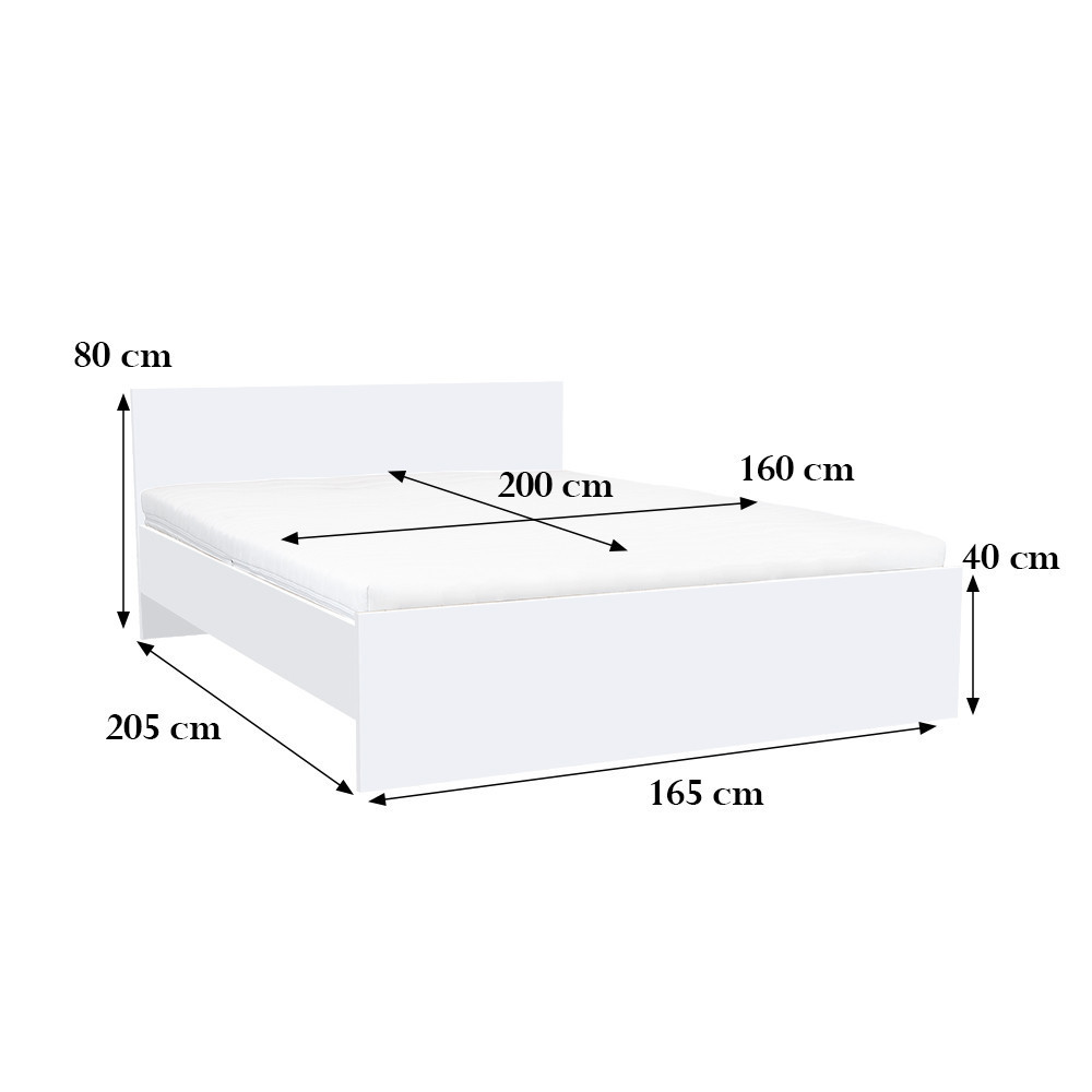 A miami ágy kiváló minőségű bútorlapból készült, fehér oldallappal, fehér fejvéggel és ágyvéggel. Az ágykeret méretei: 205 x 165 cm. Az ágytámla méretei: 80 x 165 cm. Az ágykeretbe illő matrac méretei: 200 x 160 cm