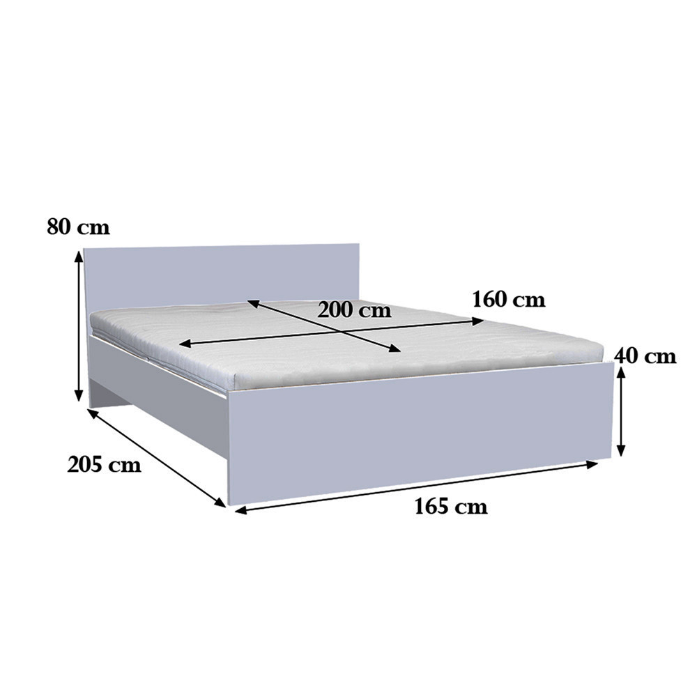 | Méretek | Ágykeret: 205 x 165 cm, Ágytámla: 80 x 165 cm, Matrac (ajánlott méret): 200 x 160 cm. |