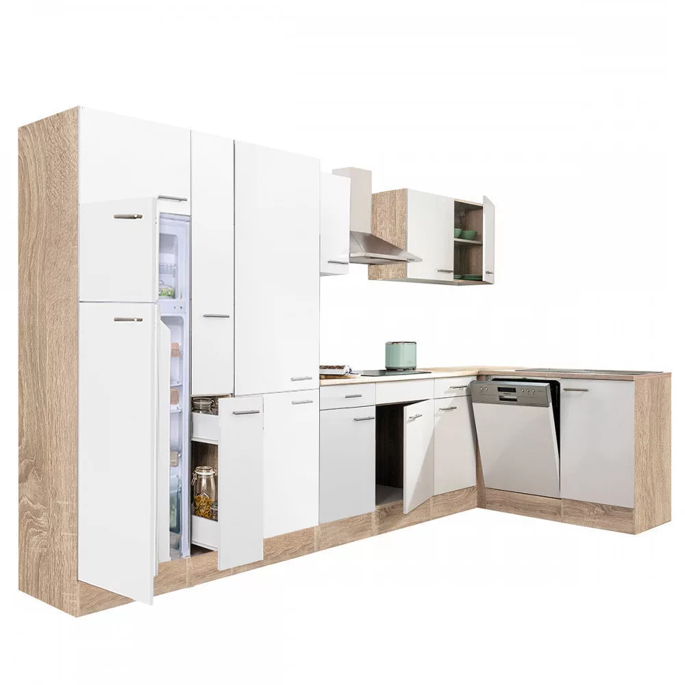 Yorki 370 sarok konyhablokk sonoma tölgy korpusz,selyemfényű fehér fronttal. A tökéletes konyha megteremtője!