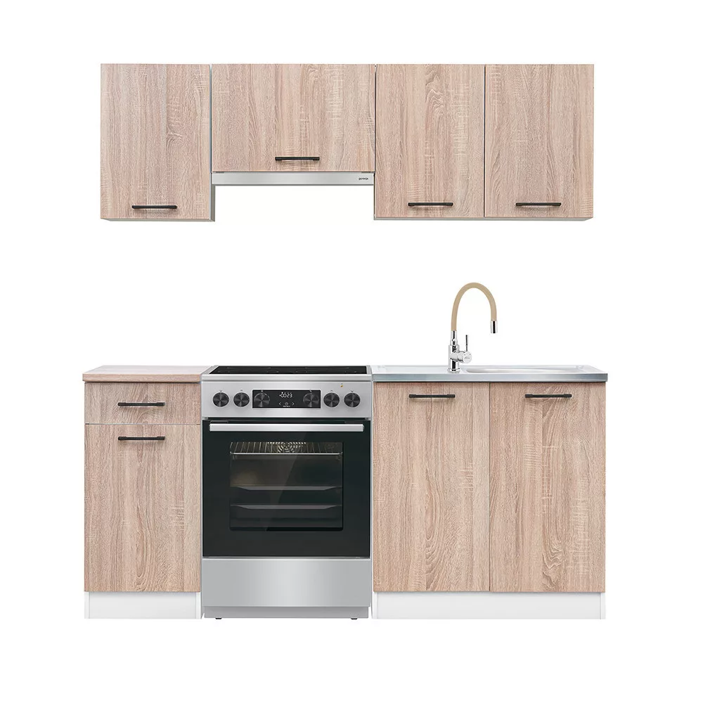 Praktik 180 cm-es konyhabútor - fehér korpusz, sonoma tölgy front