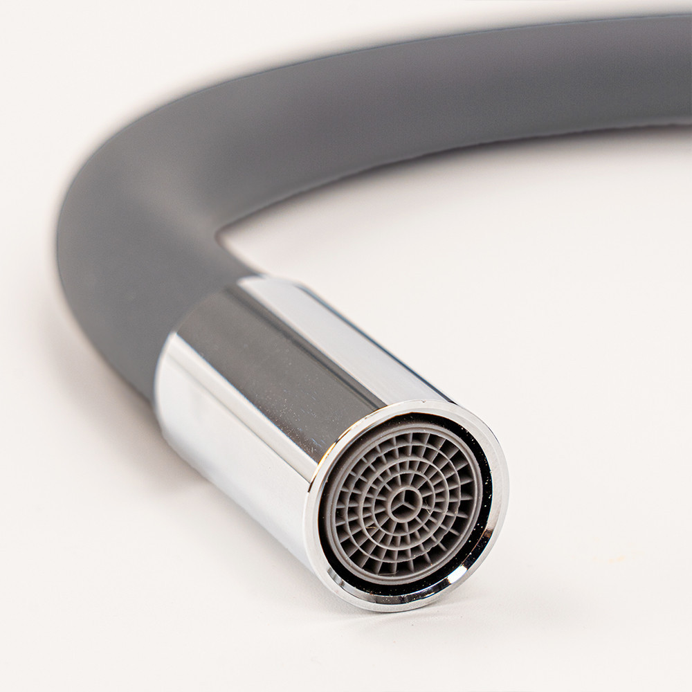 A szürke és króm színek elegáns megjelenést biztosítanak, miközben a rugalmas, 360°-ban forgatható kifolyócső maximális szabadságot nyújt a konyhai mindennapokban.