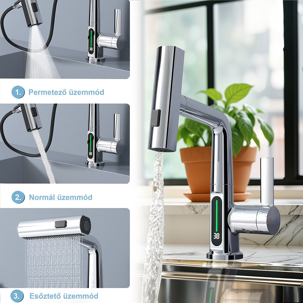 A csaptelep három különböző vízsugár opcióval rendelkezik: