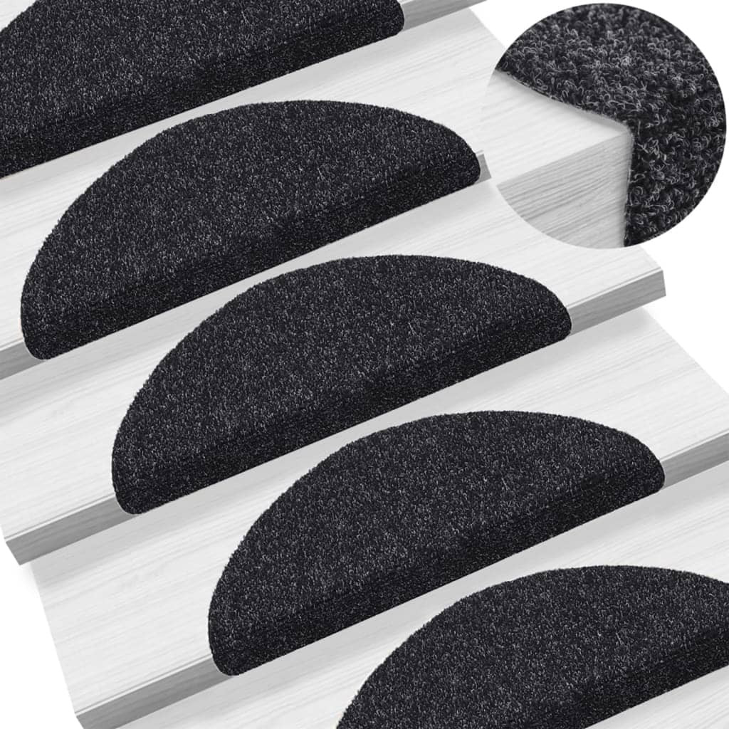 15 db öntapadós lépcsőszőnyeg, 56 x 17 x 3 cm, fekete, félkör alakú