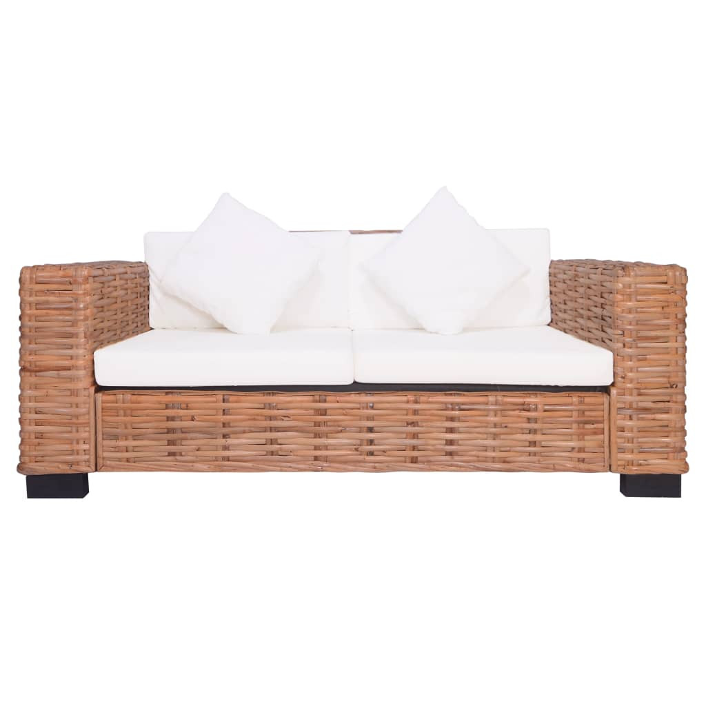 Ez a rattan kanapészett egyszerre stílusos és praktikus, így nagyszerű kiegészítője lehet otthonának. A valódi rattan anyagnak köszönhetően a szett könnyen tisztítható, strapabíró és mindennapi használatra alkalmas. Masszív favázzal lett ellátva, ami rendkívül strapabíró és stabil. A vastag ülő- és hátpárnák nagyon kényelmesek és a levehető huzatoknak köszönhetően moshatók. Emellett a széles karfák tovább növelik az ülés kényelmét. A szállítmány egy 2 személyes kanapét, egy 3 személyes kanapét, 5 ülőpárnát, 4 hátpárnát és 4 fejpárnát tartalmaz. Maksimális 110 kg ülésenként. Legyen tudatában a nyílt tűz és más erős hőforrások kockázatának a termék környezetében.