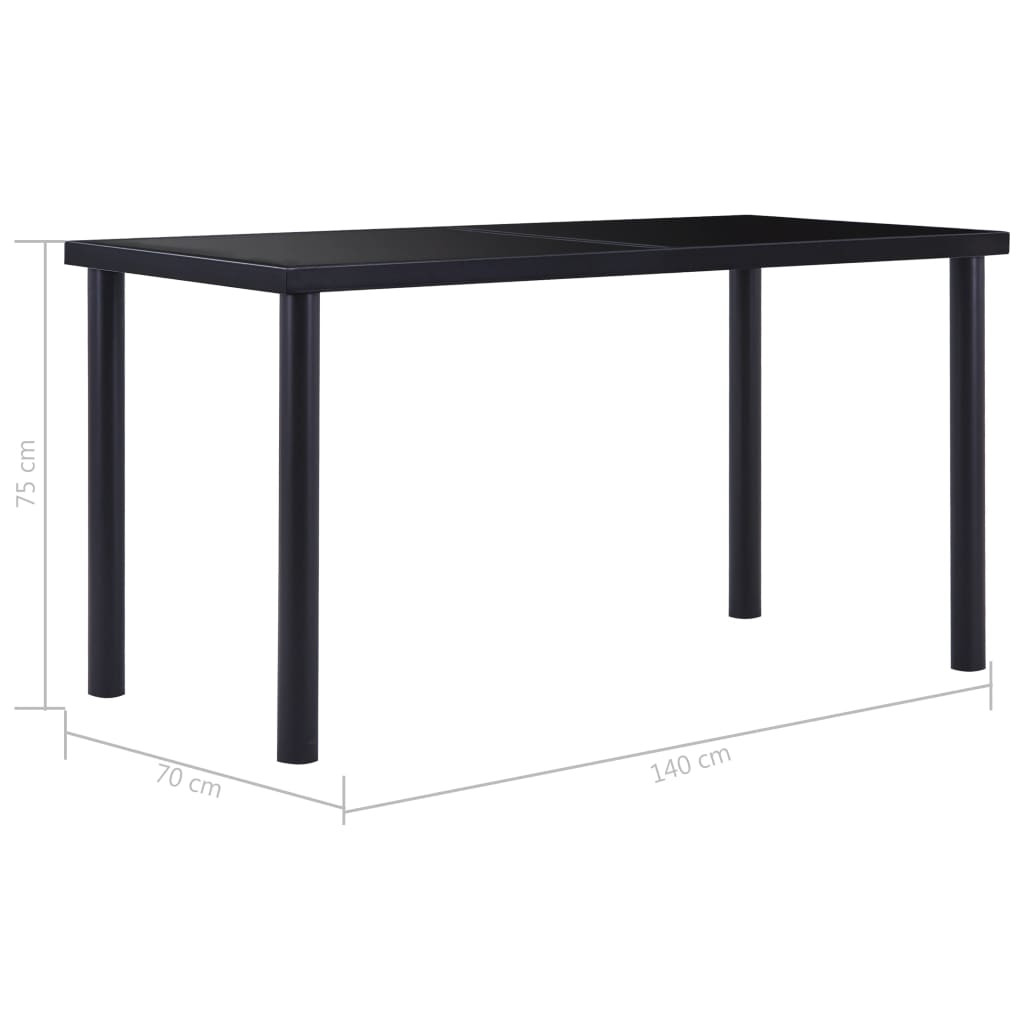 vidaXL fekete edzett üveg étkezőasztal 140 x 70 x 75 cm