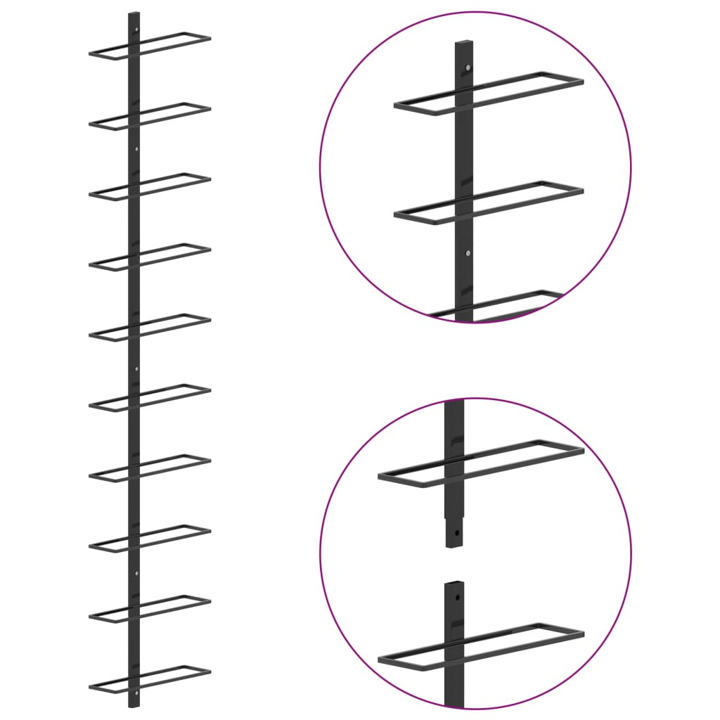 fekete fém falra szerelhető bortartó állvány 10 palacknak