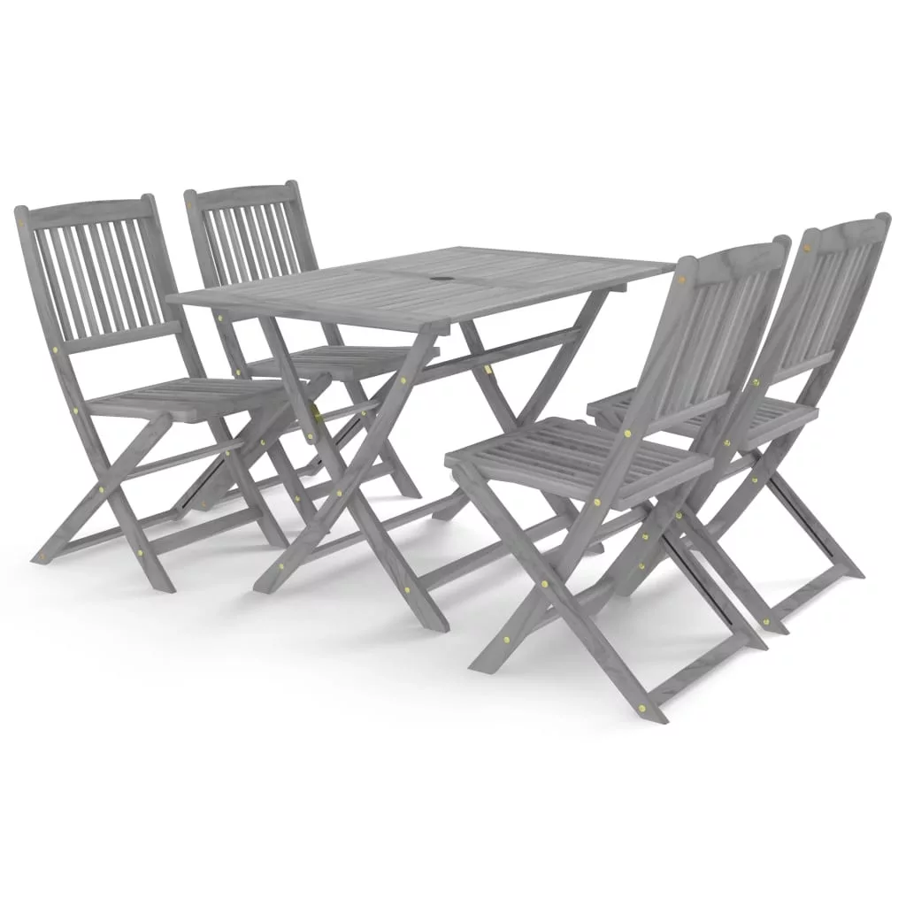 5 részes szürke tömör akácfa kerti étkezőgarnitúra