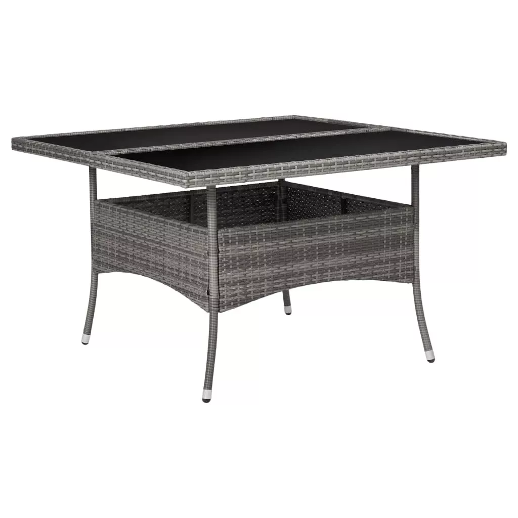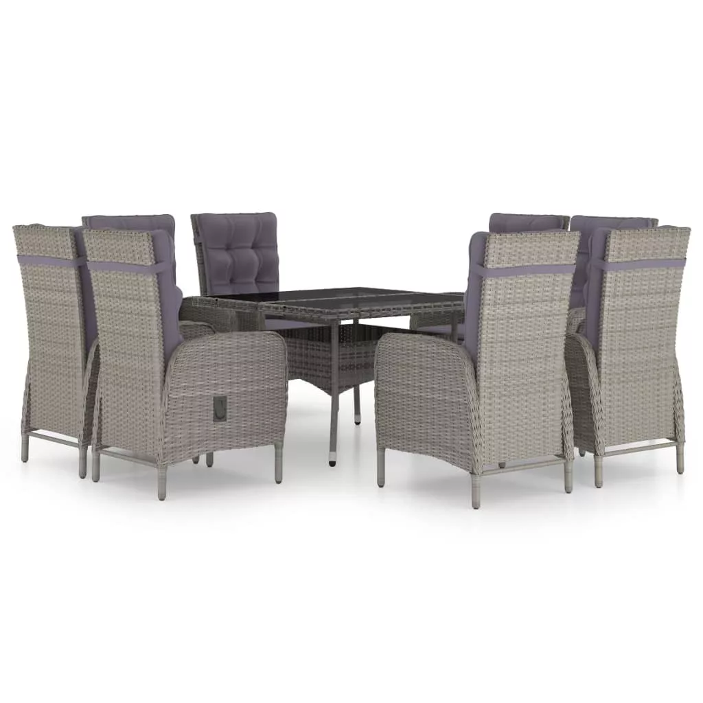 Ez a stílusos kerti étkezőgarnitúra úgy lett megtervezve, hogy kertje vagy udvara középpontja legyen. Nagyszerű választást jelent a szabadban töltött étkezéshez vagy pihenéshez! A porszórt acélváz erőssé és strapabíróvá teszi az asztalt és a székeket. A könnyűszerkezetes kialakításnak köszönhetően minden darabot egyszerűen lehet mozgatni. Az időjárásálló polyrattan és az üveg asztallap nedves ruhával könnyen tisztítható. A karosszékek a maximális kényelem érdekében ívelt háttámlával és kartámaszokkal rendelkeznek. A párnák további kényelmet nyújtanak, a cipzáras huzatok pedig levehetőek és moshatóak. Az asztal a helytakarékosság érdekében használaton kívül összecsukható. Maximum 110 kg ülésenként. Ügyeljen a nyílt tűz és más erős hőforrások veszélyére a termék közelében.