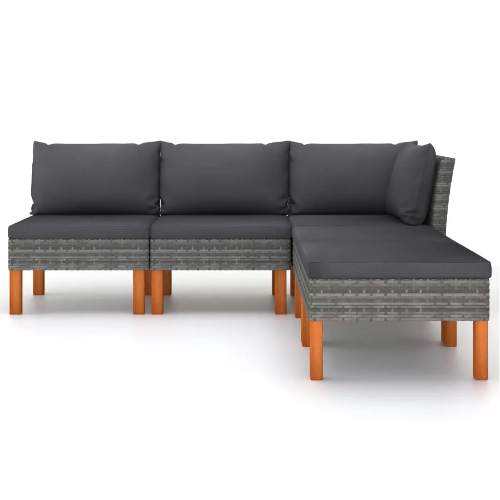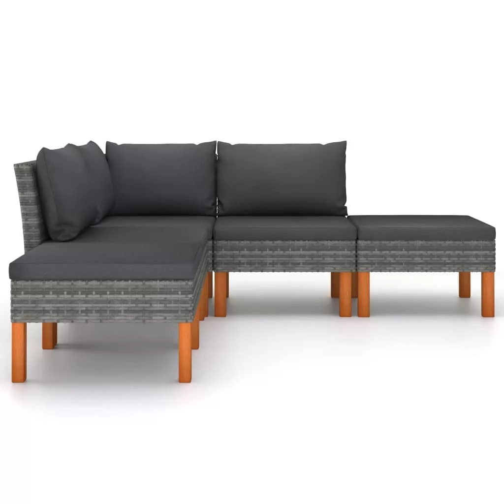 5 részes szürke polyrattan kerti ülőgarnitúra párnákkal