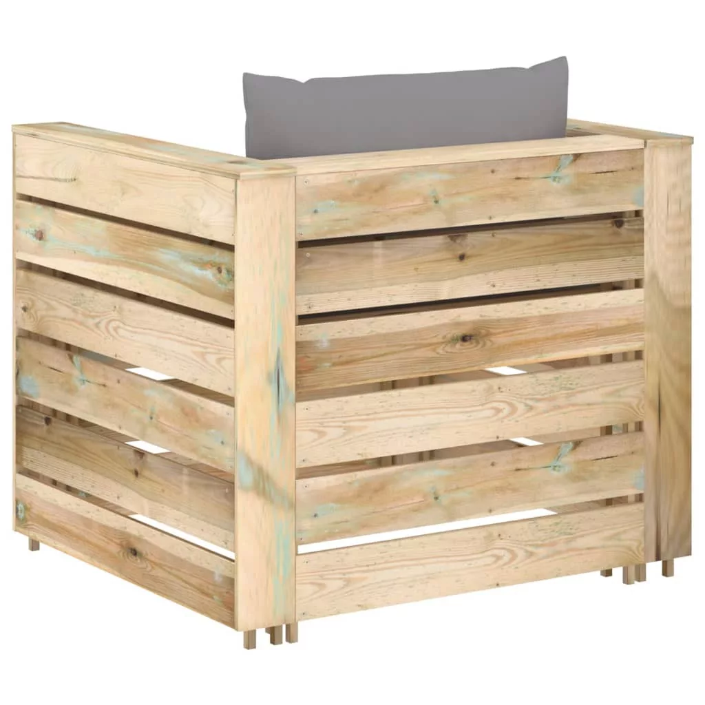 2 részes zöld impregnált fa kerti társalgó párnákkal