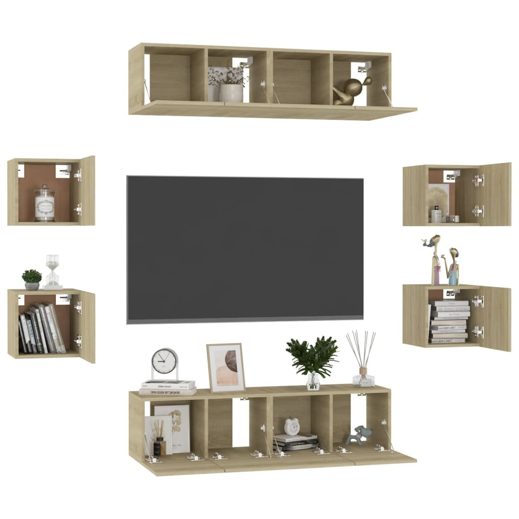 8 részes sonoma tölgy színű szerelt fa TV-szekrényszett