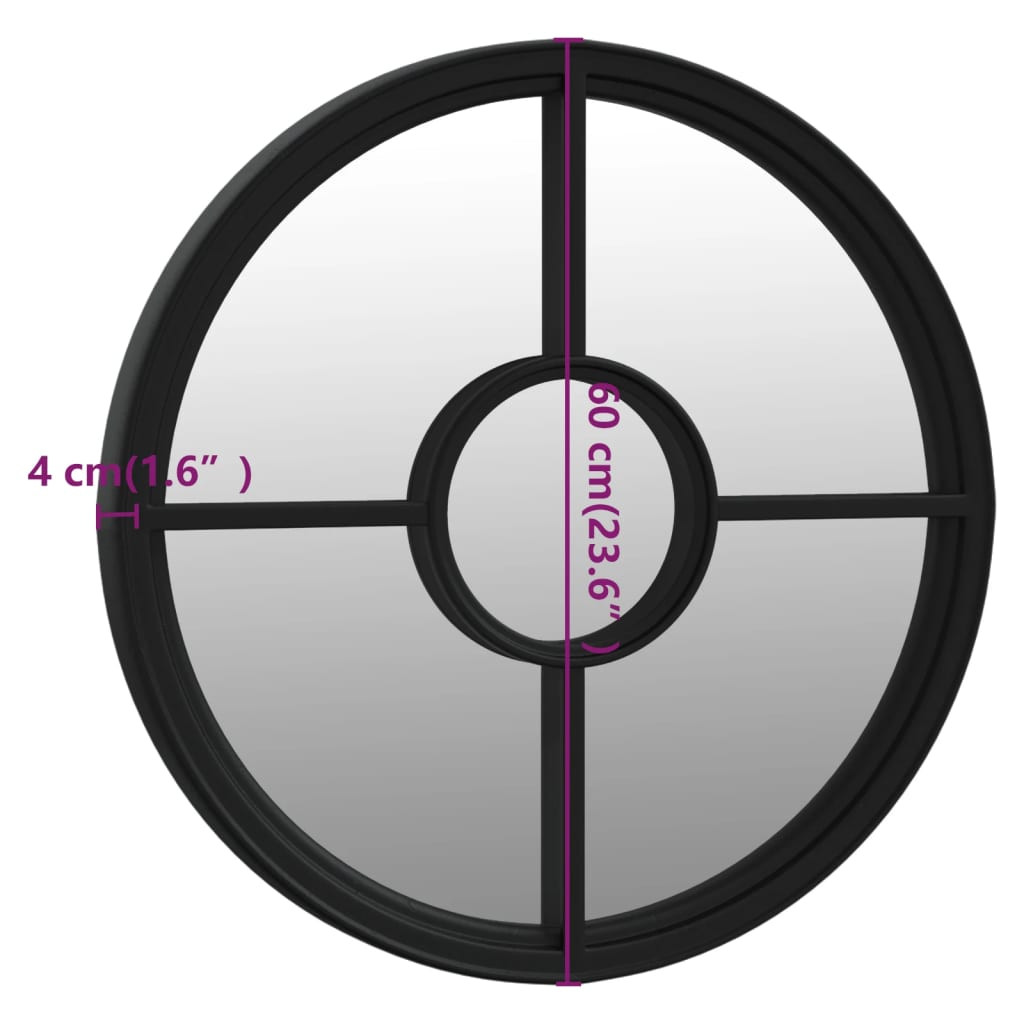 fekete kerek vas tükör beltéri használatra 60 x 4 cm