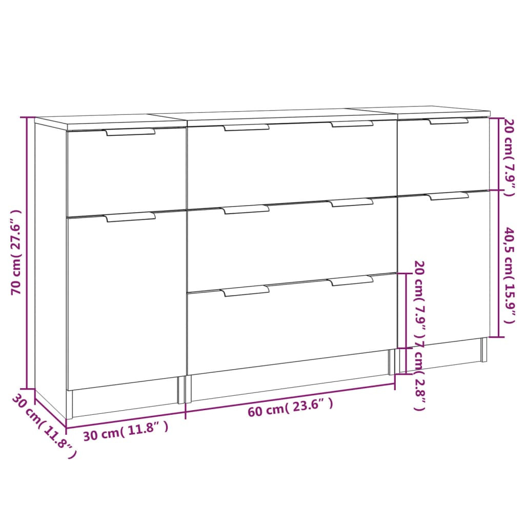 • Mérete (3 fiókos tálalószekrény): 60 x 30 x 70 cm (Szé x Mé x Ma)
