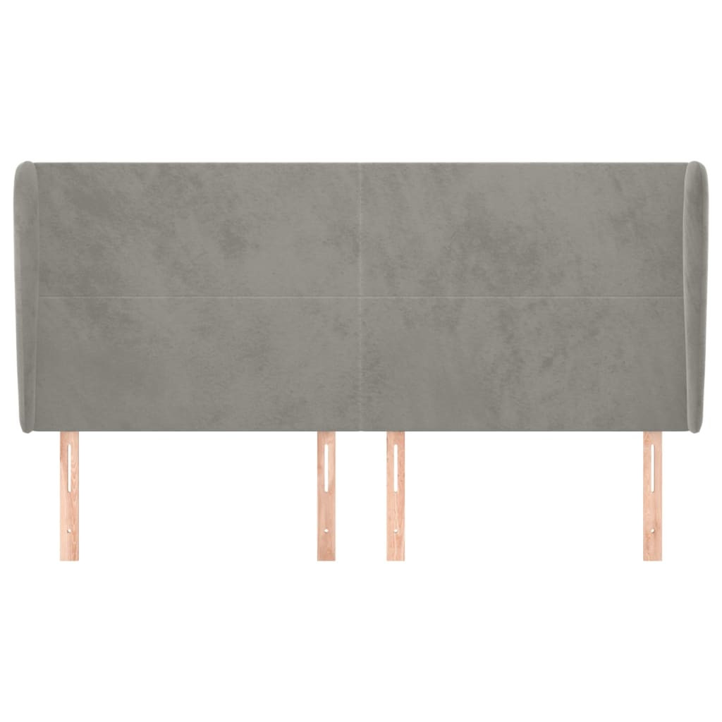 világosszürke bársony fejtámla szárnyakkal 163x23x118/128 cm