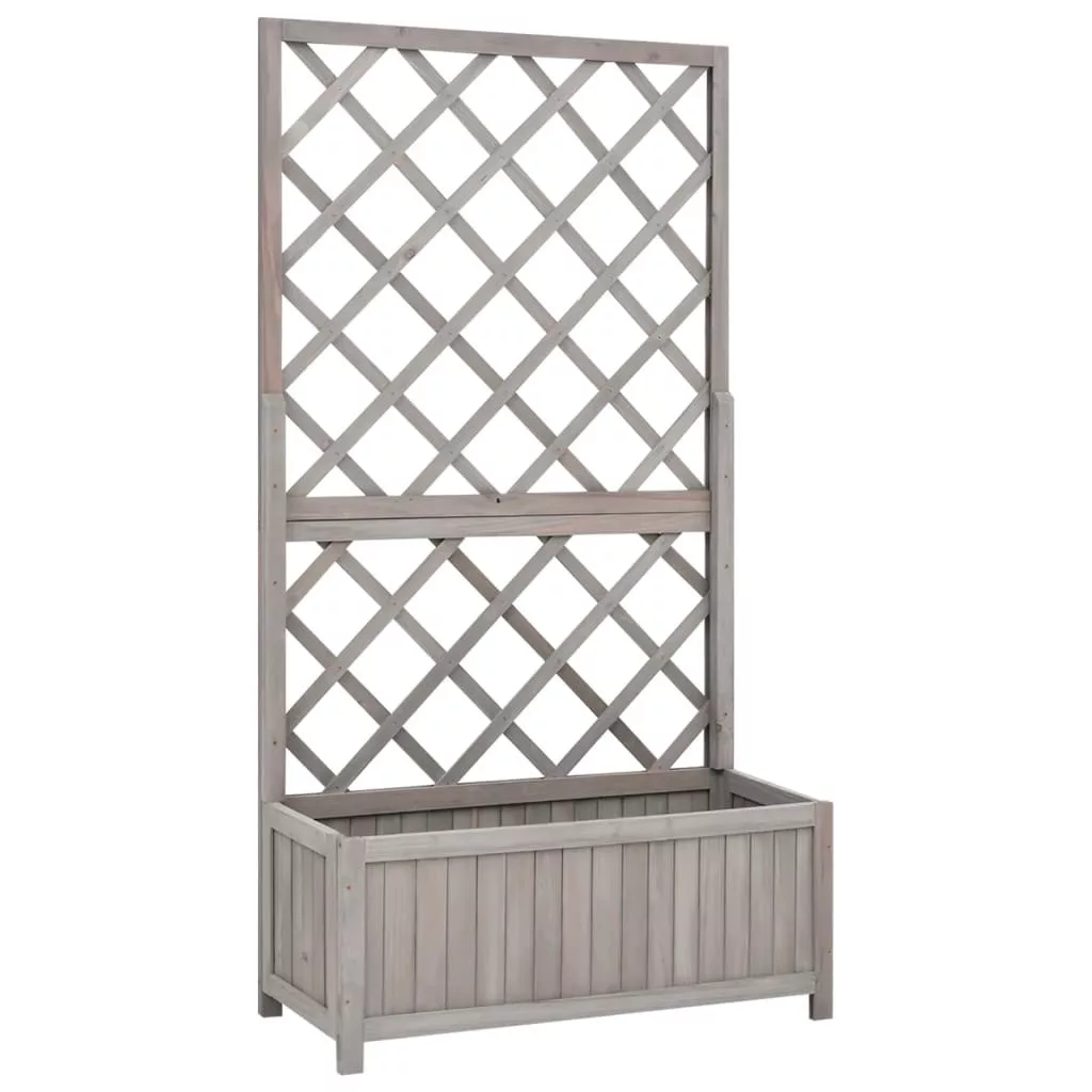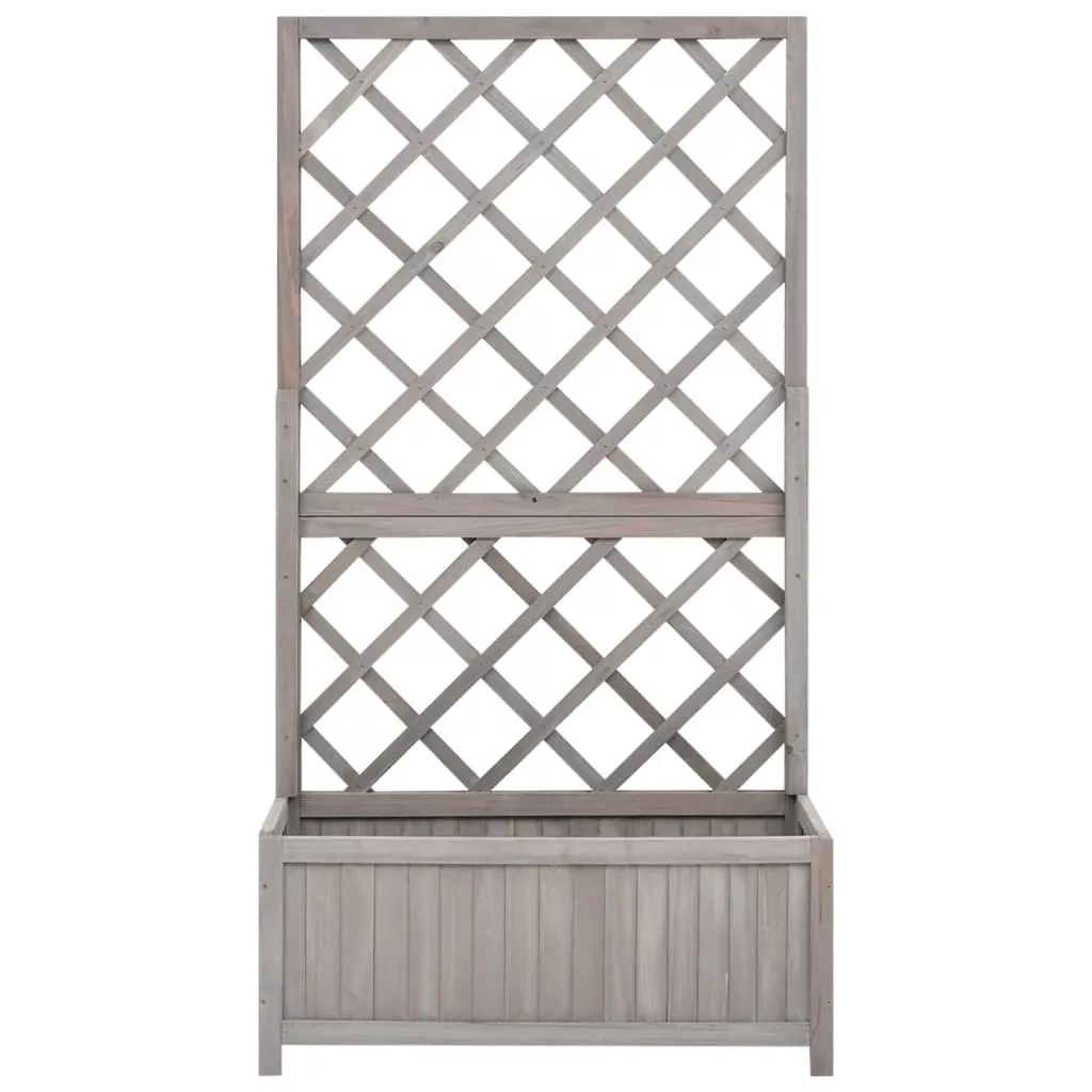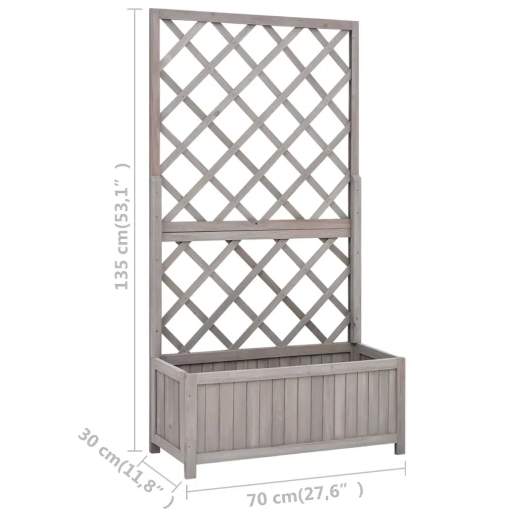 szürke tömör fenyőfa rácsos kerti ültetőláda 70 x 30 x 135 cm