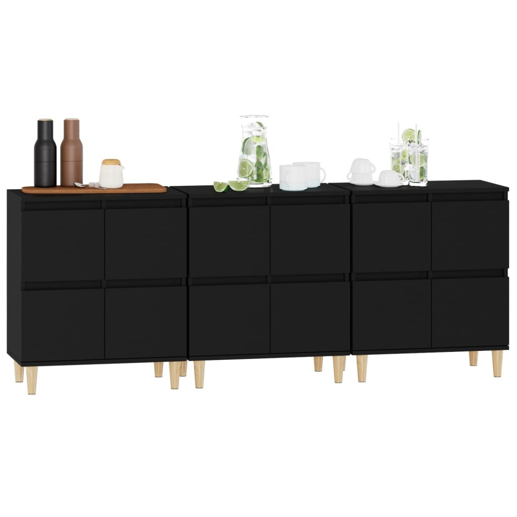 3 db fekete szerelt fa tálalószekrény 60 x 35 x70 cm