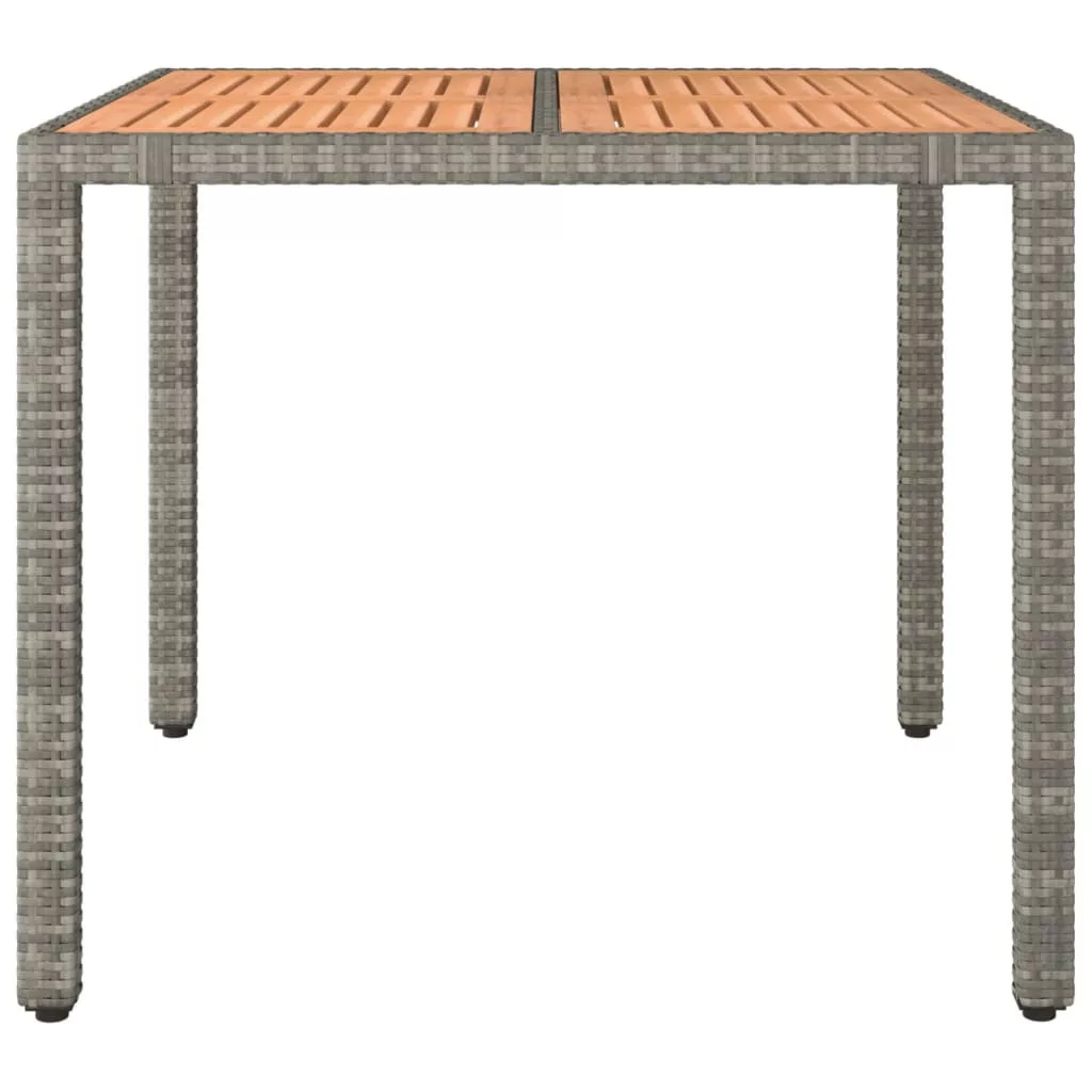 Ez a fa asztallappal ellátott kerti asztal egyszerű és letisztult vonalakkal rendelkezik, és nagyszerű választás a kertbe, a teraszra vagy más kültéri környezetbe. Tartós anyag: A PE-rattan, más néven polyrattan, időjárásálló és könnyen tisztítható. Sokáig megőrzi szépségét a szabadban. Más anyagoknál gazdaságosabb, valamint kiváló minőséget, kényelmet és esztétikus megjelenést biztosít.Stabil váz: Az acél rendkívül kemény és erős anyag. Erőt és stabilitást biztosít.Fa asztallap: A tömör akácfa asztallap ideális ételek, italok és dísztárgyak elhelyezésére. Gyönyörű megjelenésű, és könnyen tisztítható.Vízálló kialakítás: A vízálló anyagból készült termék ellenáll a nedvességnek és az esős időjárásnak. Emellett szükség szerint nedves ruhával könnyen tisztítható. Jó tudni:A szerelés megkönnyítése érdekében minden termékhez mellékelünk útmutatót. Megjegyzés:A kültéri bútor szépségének megőrzése érdekében javasoljuk, hogy vízálló huzattal fedje be.