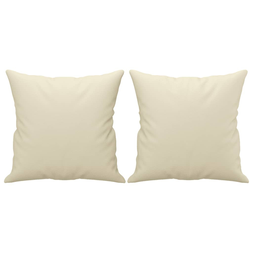 2 személyes krémszínű műbőr kanapé díszpárnákkal 140 cm