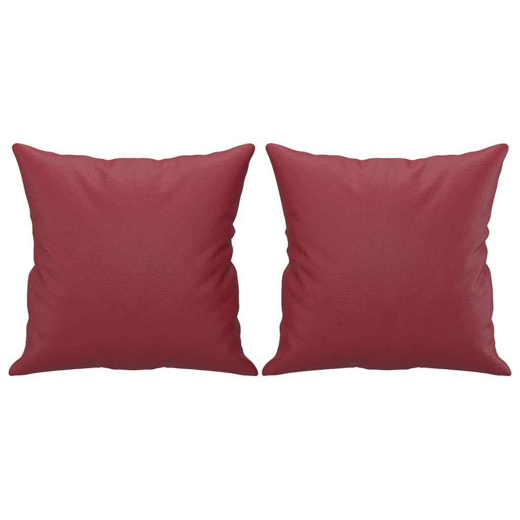 2 személyes bordó műbőr kanapé díszpárnákkal 140 cm