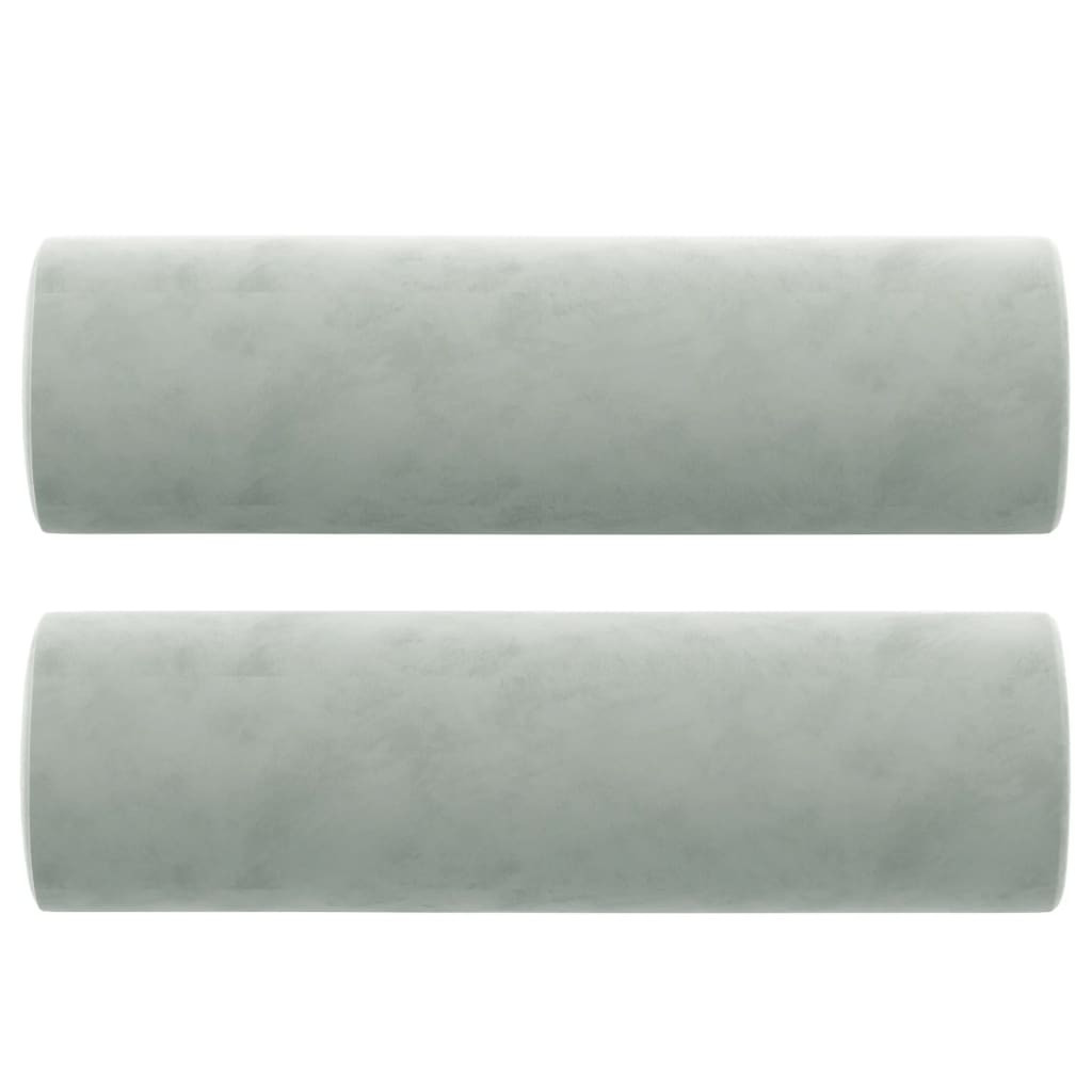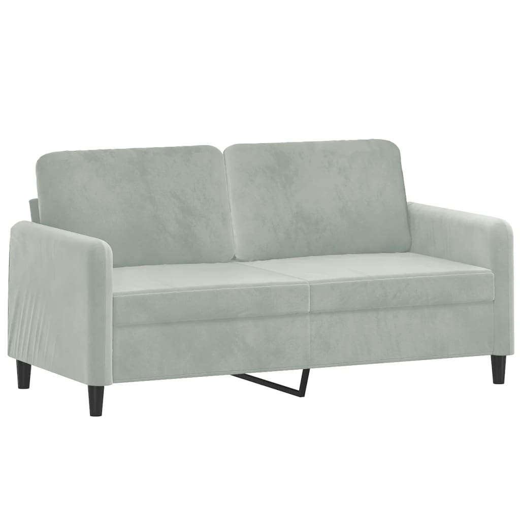 2 személyes világosszürke bársony kanapé díszpárnákkal 140 cm