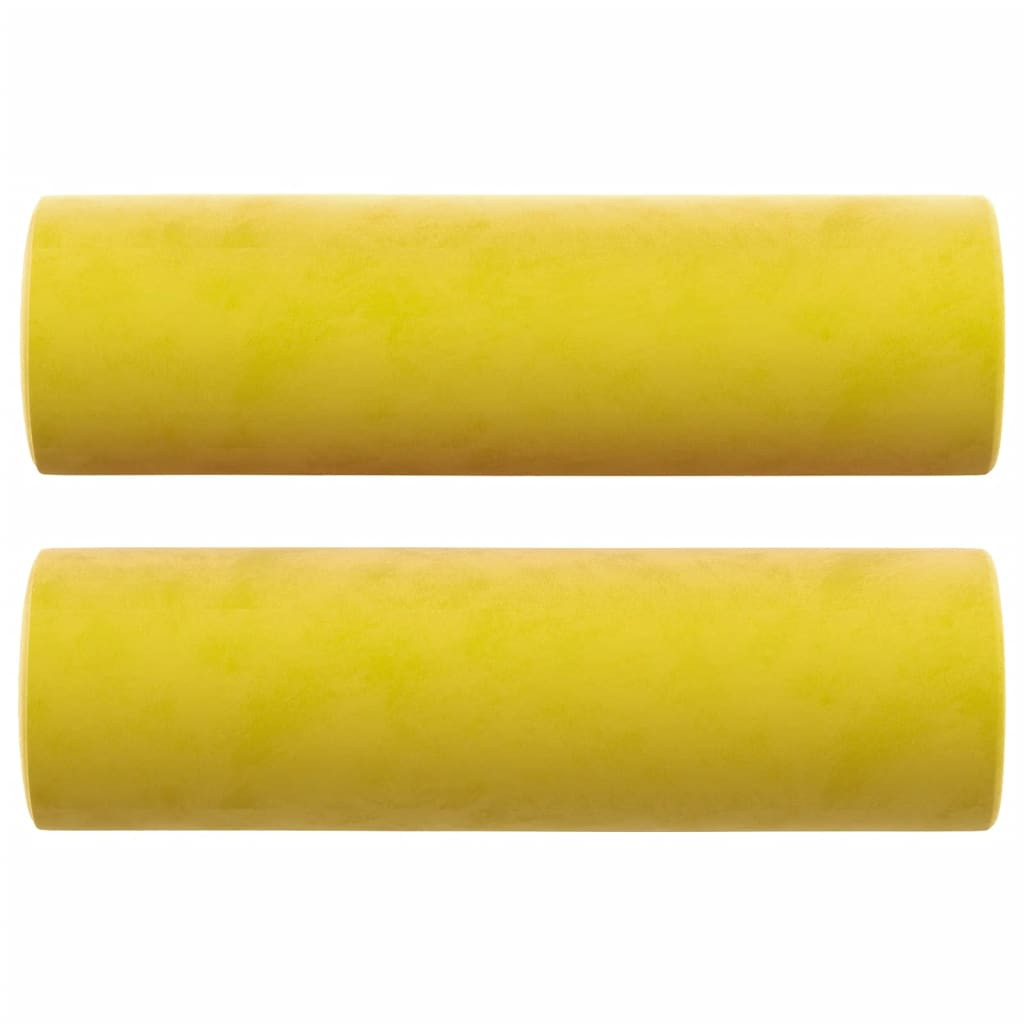 2 személyes sárga bársony kanapé díszpárnákkal 140 cm