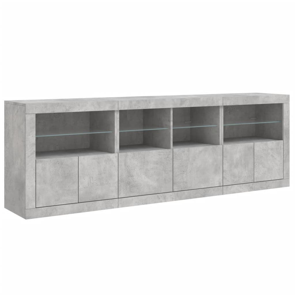 betonszürke tálalószekrény LED-világítással 202x37x67 cm