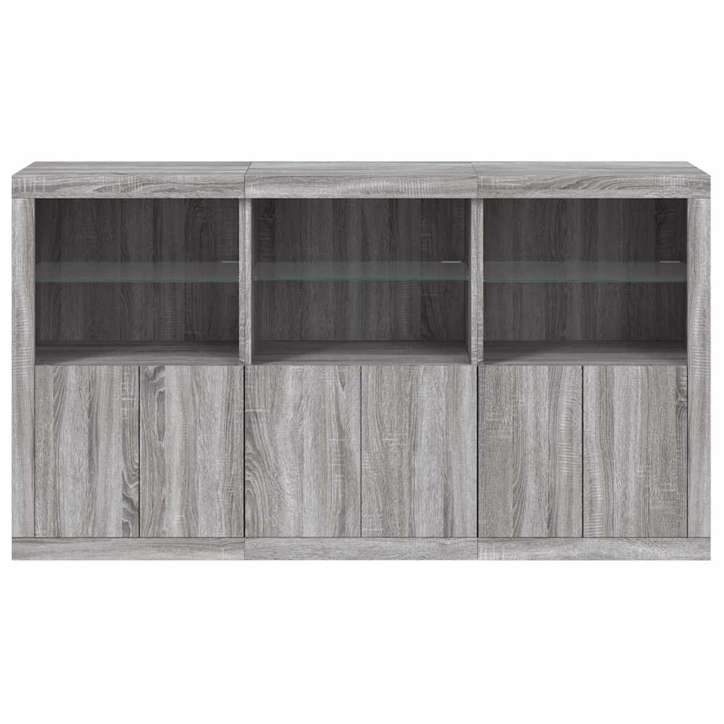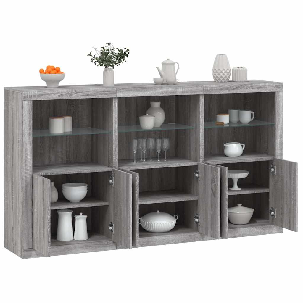 szürke sonoma színű tálalószekrény LED-ekkel 181,5x37x100 cm