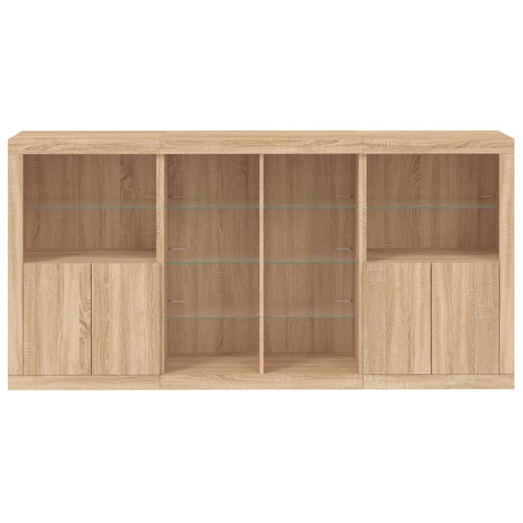 sonoma tölgy színű tálalószekrény LED-ekkel 202 x 37 x 100 cm