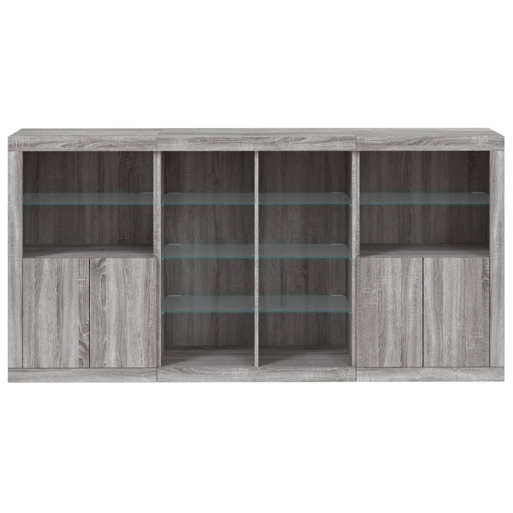 vidaXL szürke sonoma színű tálalószekrény LED-ekkel 202 x 37 x 100 cm
