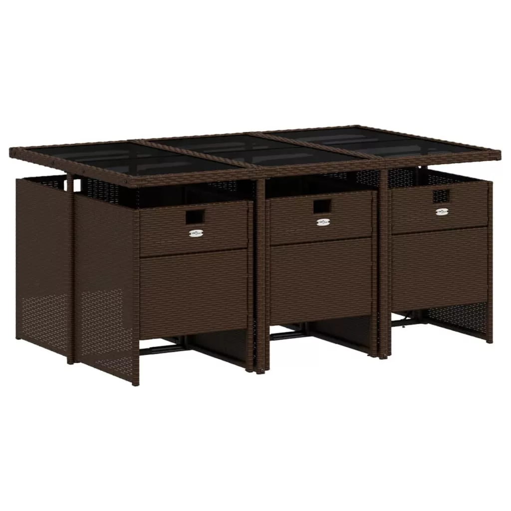 7 részes barna polyrattan kerti étkezőgarnitúra párnával
