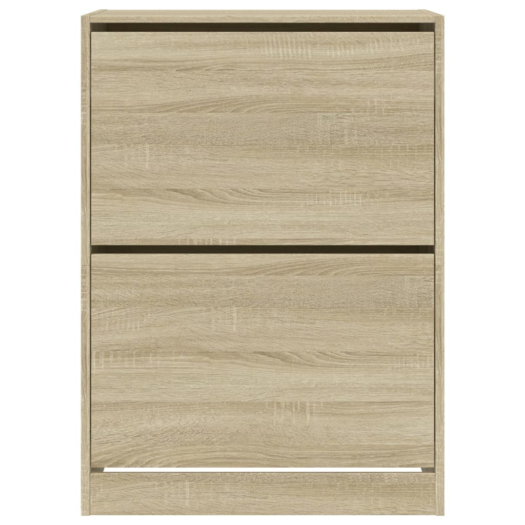 Tartsa rendezetten és mindig elérhető helyen cipőit ezzel a cipőtároló szekrénnyel! Tartós anyag: A szerelt fa kivételes minőségű, sima felületű, szilárd, stabil, és ellenáll a nedvességnek.Helytakarékos kialakítás: A cipőszekrény optimálisan használja ki a függőleges teret, és kis alapterületet foglal el, így különösen alkalmas kis helyiségekbe.Bőséges tárolóhely: A cipőtároló szekrényben kihajtható fiókok találhatók, amelyek elrejtik a cipőket, hogy tiszta és rendetlenségmentes teret biztosítson.Divatos kialakítás: A cipőszekrény letisztult vonalaival és minimalista megjelenésével egy csipetnyi modern hangulatot csempész otthonába. Figyelem:A felborulás elkerülése érdekében ezt a terméket a mellékelt fali rögzítőeszközzel kell használni.