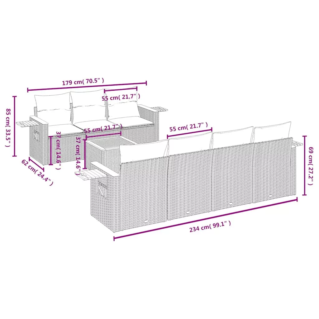 Ez a kerti ülőgarnitúra tökéletes kiegészítője lesz kertjének, teraszának vagy udvarának, kényelmes és hívogató teret biztosítva a családdal és a barátokkal való beszélgetéshez, vagy egyszerűen csak pihenéshez a szabadban. Tartós anyag: A PE rattan, más néven polyrattan, egy erős, kevés karbantartást igénylő szintetikus anyag, amely úgy néz ki, mint a természetes rattan. Könnyű, könnyen tisztítható, tartóssága és időjárásálló tulajdonságai miatt gyakran használják kültéri bútorok készítéséhez.Stabil és könnyen tisztítható asztallap: A kerti asztal akácfa lapja masszív, tartós és nedves ruhával könnyen tisztítható.Kényelmes kisasztal: Ez a kerti bútor összecsukható kisasztallal rendelkezik, a karfán gázrugóval, amely kényelmes helyet biztosít a legfontosabb dolgoknak könnyen elérhető helyen tartásához.Levehető és mosható huzat: Ezek az ülőpárnák levehető huzattal rendelkeznek az egyszerű mosás és karbantartás érdekében.Moduláris kialakítás: Ez a kerti bútorkészlet moduláris felépítésű, így teljesen rugalmas és könnyen mozgatható, így személyre szabott kerti bútor-elrendezést alakíthat ki. Jó tudni:A kültéri bútor szépségének megőrzése érdekében javasoljuk, hogy vízálló huzattal fedje be.
