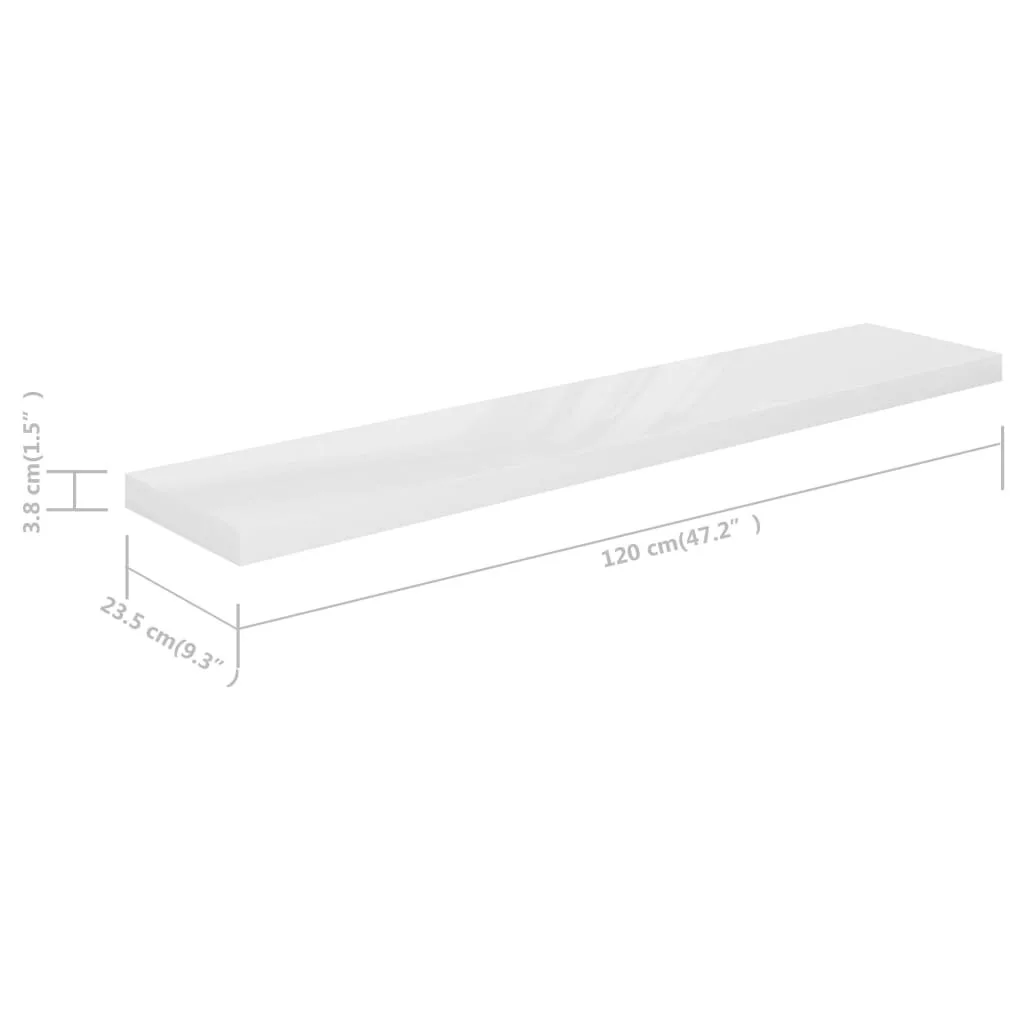 4 db magasfényű fehér MDF lebegő fali polc 120 x 23,5 x 3,8 cm