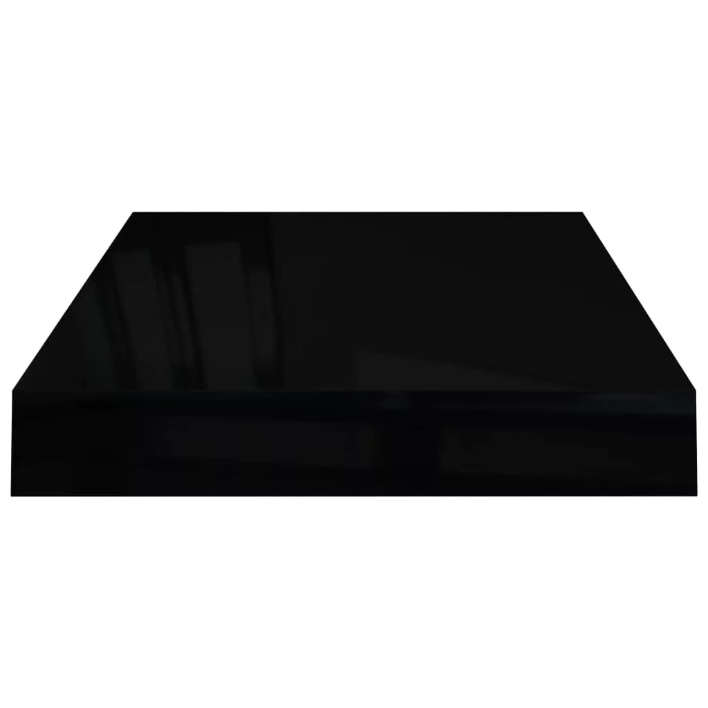 2 db magasfényű fekete MDF lebegő fali polc 40 x 23 x 3,8 cm