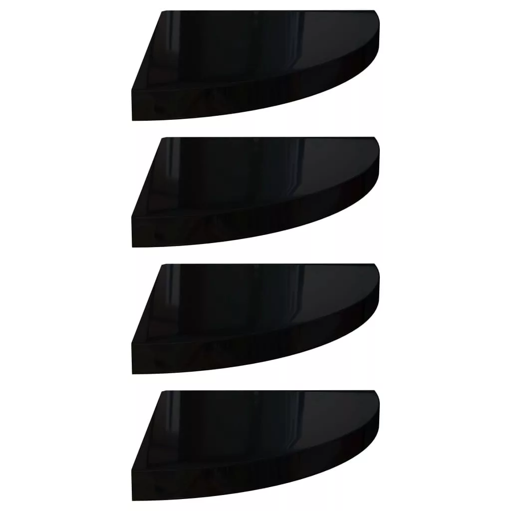 4 db magasfényű fekete MDF lebegő sarokpolc 35 x 35 x 3,8 cm