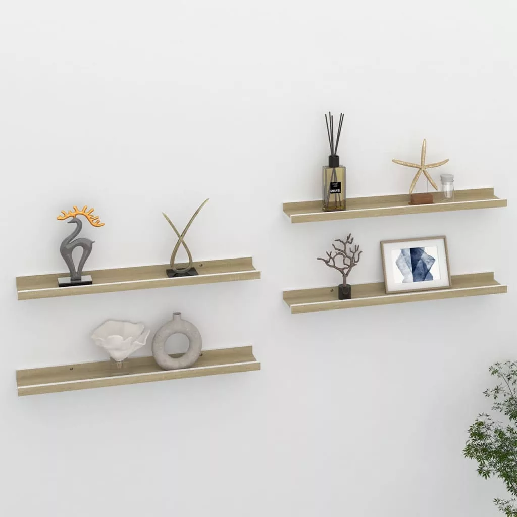 4 db fehér és sonoma tölgy színű fali polc 60 x 9 x 3 cm