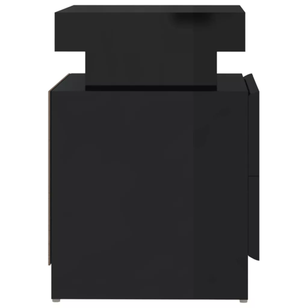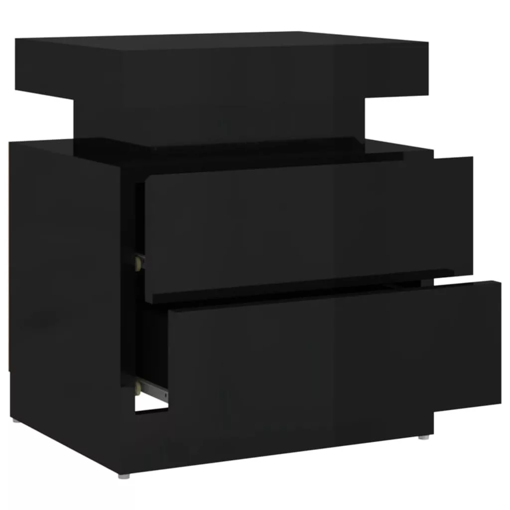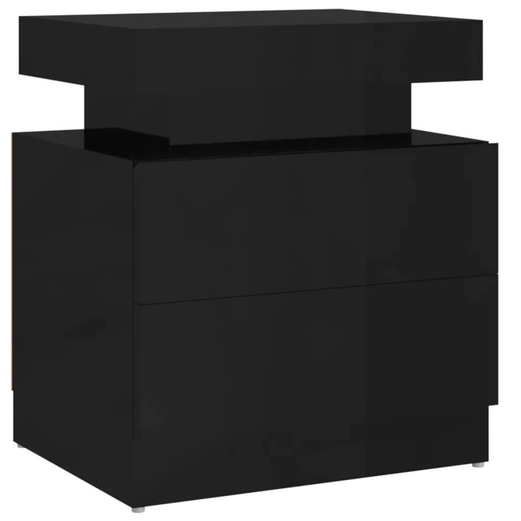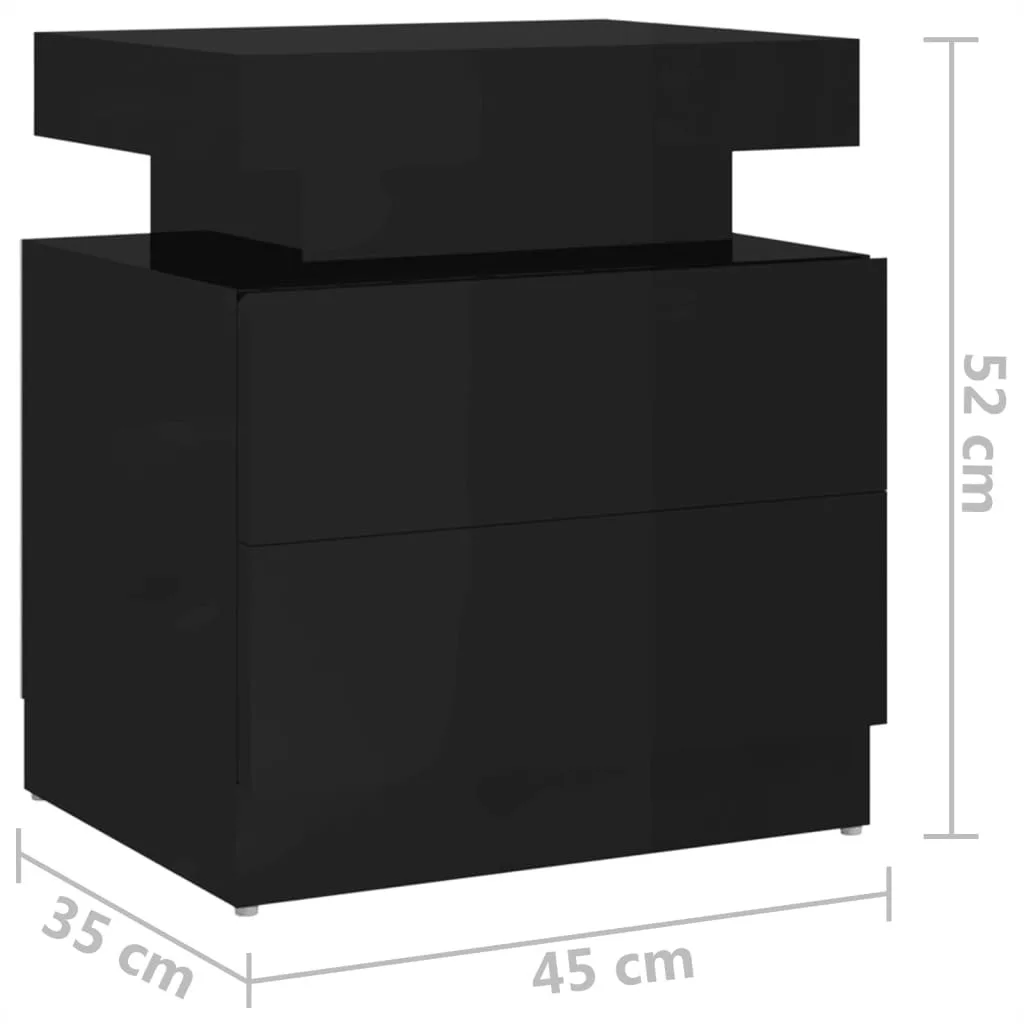 magasfényű fekete szerelt fa éjjeliszekrény 45 x 35 x 52 cm