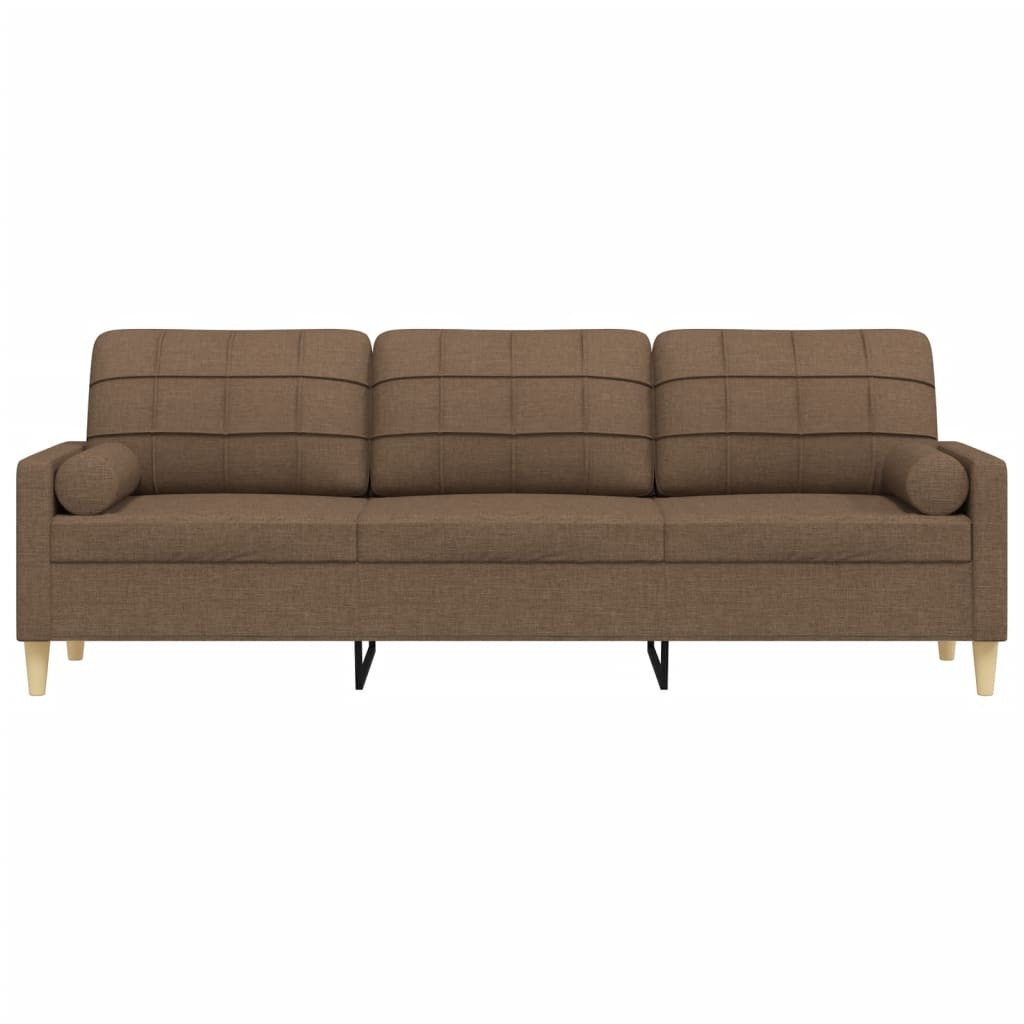 3 személyes barna szövet kanapé díszpárnákkal 210 cm