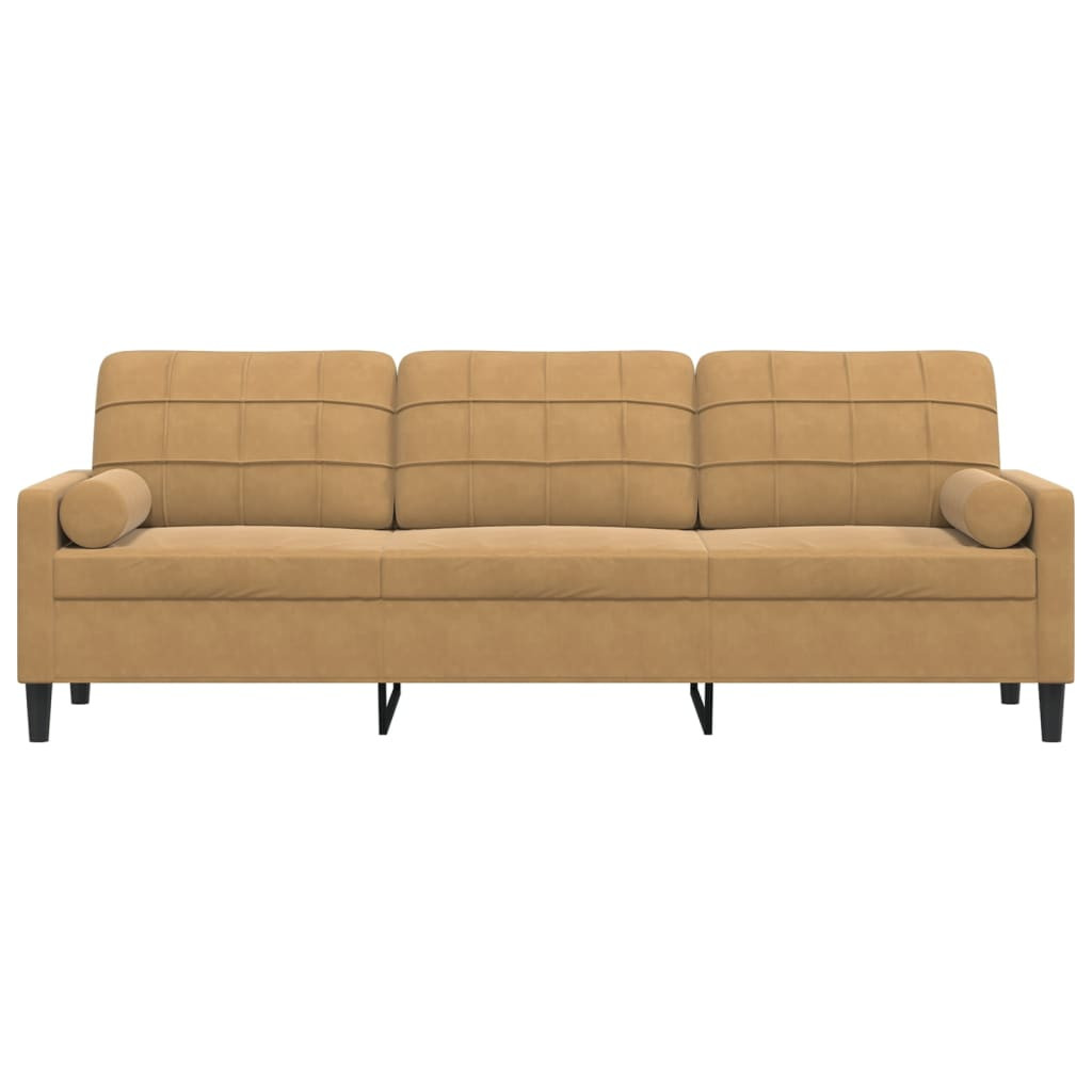 3 személyes barna bársony kanapé díszpárnákkal 210 cm