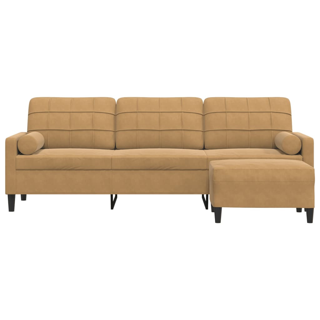 Ez a 3 személyes kanapé kiváló hely a beszélgetéshez, olvasáshoz, tévézéshez vagy akár pihenéshez. Garantáltan otthona gyöngyszeme lesz. Puha és kényelmes anyag: A bársony szövet puha és sima felülettel rendelkezik, amely kellemes tapintású, meleg, és maximális kényelmet biztosít.Masszív és stabil váz: A fémből készült váz szilárdságot és stabilitást biztosít a társalgókanapénak.Kényelmes ülésélmény: A kanapé rendkívül kényelmes a vastagon párnázott üléseknek, karfáknak és hátpárnáknak köszönhetően.Sokoldalú lábzsámoly: A zsámoly sokoldalú, kényelmes lábtámaszként szolgál, amikor a kanapén pihen, de szolgálhat ülőhelyként is. Egyszerű kialakításának és kompakt méretének köszönhetően szinte bármelyik helyiségbe ideális választás.Szemet gyönyörködtető dizájn: Egyszerű, de modern dizájnjával ez a kanapé figyelemfelkeltő darab lesz a szobájában.