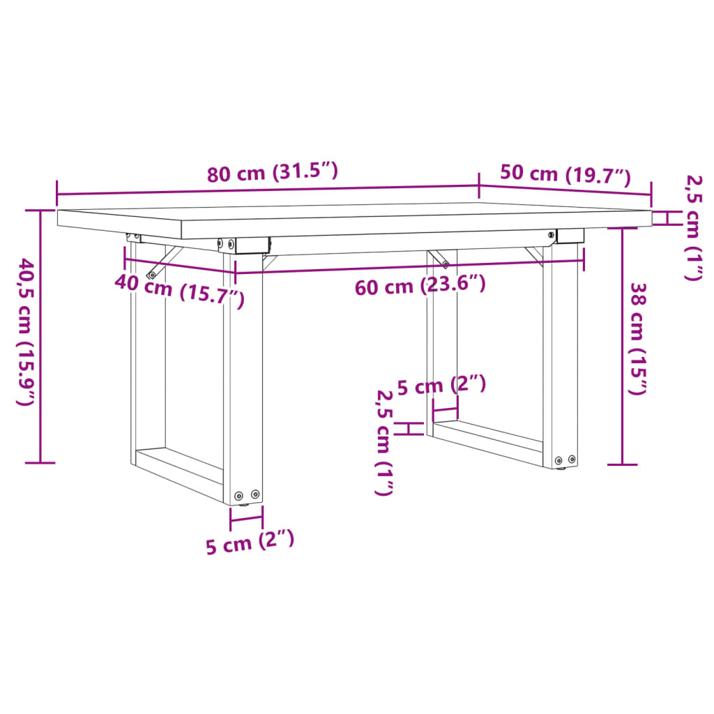 tömör fenyőfa és acél O-vázú dohányzóasztal 80x50x40,5 cm