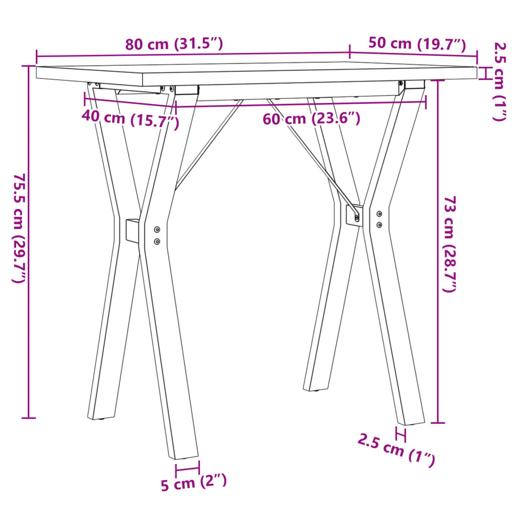 tömör fenyőfa és acél étkezőasztal Y-vázzal 80x50x75,5 cm